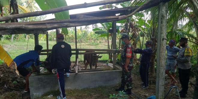 BADUNG – Babinsa Koramil 1611-04/Mengwi Sertu Ida Bgs Ambara bersinergi dengan Bhabinkamtibmas bersama pihak terkait mendatangi kandang peternakan sapi guna memberikan suntikan vaksinasi kepada hewan ternak sebagai bentuk pencegahan penyebaran wabah Penyakit Mulut dan Kuku (PMK), Selasa (19/07/22)