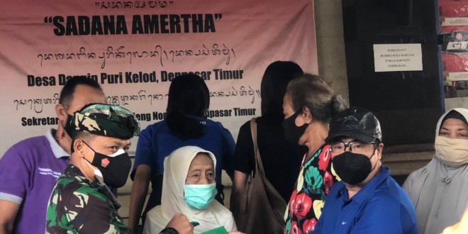 bsDenpasar – Menyikapi perkembangan pandemi virus covid-19 Kodim 1611/ Badung menggelar Bakti Sosial bekerjasama dengan Bali Travell Memori  bertempat di Desa Dangin Puri Kelod Jl. Letda Kajeng No 35 Dangin Puri Kelod Kec. Denpasar Timur Kota Denpasar Sejumlah paket sembako berupa bahan pokok kehidupan sehari-hari yang dibagikan untuk warga yang terdampak secara ekonomi akibat merebaknya virus corana (covid-19). Kegiatan Baksos Kodim 1611/ Badung ini mengandung harapan bahwa ditengah situasi seperti ini bisa membantu meringankan beban masyarakat kurang mampu yang terdampak secara langsung Pandemi Covid-19. mengharapkan kepada semua pihak dapat bekerja sama untuk bersama-sama peduli kepada sesama. (30/7/21).
