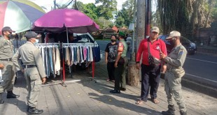 Babinsa Koramil 1611-04/Mengwi bersama Satpol PP Terapkan Prokes