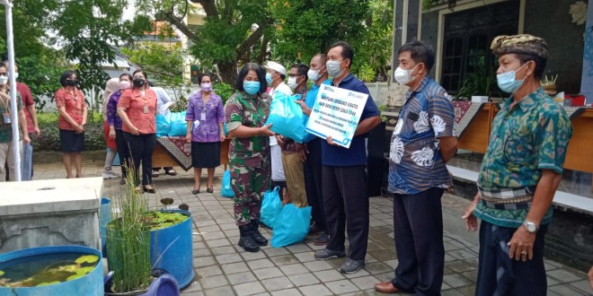 Denpasar – Wujud kebersamaan, soliditas dan sinergitas TNI dengan warga masyarakat binaannya Koramil 1611-02/Dentim melalui Babinsa 1611-01/Dentim Sertu Zikirman Bersama Bhabinkamtibmas mendampingi pemberian PT. Pelindo regional Bali Nusra kepada masyarakat  dalam rangka menyambut hari raya Nyepi  Tahun Caka 1944 bertempat Kantor Lurah serangan Kec Densel Kota Denpasar Selasa 01/03/2022