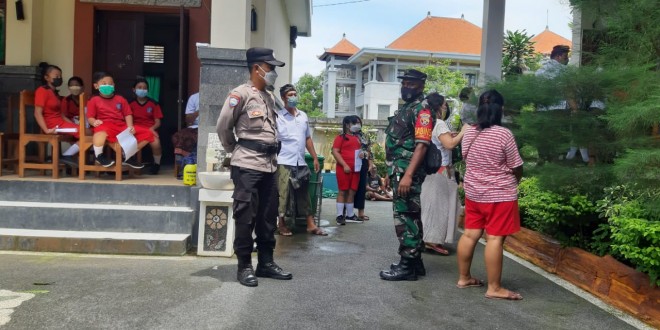 Badung – Dalam rangka mendukung Kegiatan Vaksinasi Covid 19 anak usia 6 – 12 tahun dan memutus penularan Covid-19, Babinsa Koramil 1611-08/Kuta Selatan Pelda Yohanes bersama Bhabinkamtibmas melaksanakan pendampingan kegiatan vaksin untuk anak sekolah usia 6 — 11 tahun yang dilaksanakan oleh Puskesmas Kuta Selatan bertempat di SD 2 & SD 4 Kelurahan Jimbaran Kec.Kuta Selatan, Kab. Badung Kamis (23/12/2021)