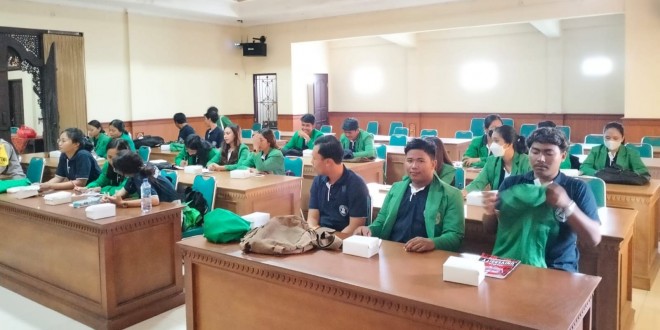 BADUNG – Dalam rangka pengukuhan dan pelatihan KKN Mahasiswa Mahasaraswati Angkatan ke 46 tahun 2023, Babinsa Koramil 1611-05/Abiansemal Kodim 1611/Badung Sertu Made Windia bersama Bhabinkamtibmas menghadiri serta memantau pelaksanaan kegiatan yang dilaksanakan di Ruang Sabha Gosana Kantor Prebekel Desa Jagapati Kecamatan Abiansemal Kabupaten Badung. Rabu (01/03/23).