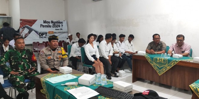 BADUNG – Babinsa Koramil 1611-08/Kutsel Kodim 1611/Badung Sertu Azis Muslim berseinergi dengan Bhabinkamtibmas nuada menghadiri kegiatan pelantikan dan bimtek Panitia Pemutakhiran data Pemilih (Pantarlih) desa ungasan dalam rangka pelaksanaan tahapan pemilihan umum tahun 2024 yang dihadiri sekitar 50 orang bertempat di Kantor Desa Ungasan Jl. Pura Batu Pageh Banjar Kauh Desa Ungasan Kec.Kuta Selatan Kab. Badung. Minggu (12/02/23).
