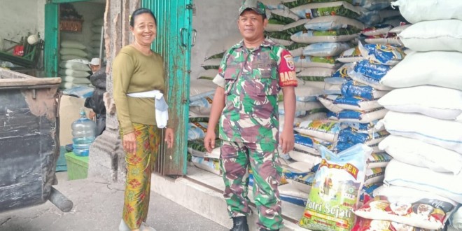 DENPASAR – Dalam rangka menyiapkan ketahanan pangan di wilayah binaan, Koptu Hadinuryanto selaku Babinsa Kelurahan Padangsambian Koramil 1611-07/Denbar Kodim 1611/Badung mendatangi grosir gudang beras yang ada di Jl. Gunung Agung, Kel. Padangsambian Kec. Denbar Kota Denpasar. Sabtu (04/02/23).