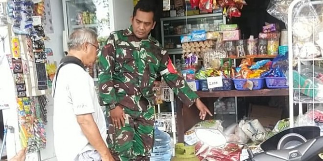 Dalam kegiatannya Kopda Joni mengecek ketersediaan beras guna memantau ketersediaan serta kebutuhan pangan di wilayah Koramil 1611-02/Densel.