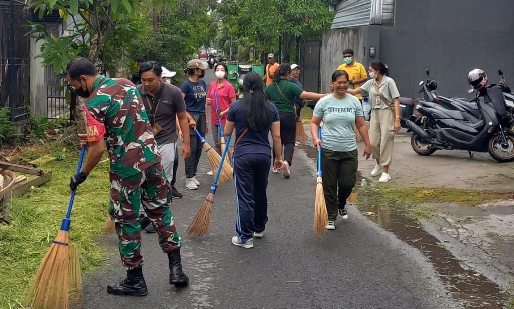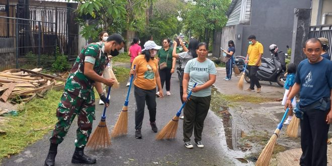 DENPASAR – Babinsa Koramil 1611-02/Densel Kodim 1611/Badung Koptu Gede Joni bersama perangkat kelurahan melaksanakan kegiatan Karya Bhakti Jumat Bersih berlokasi disepanjang Jalan Ciung Wanara VI Lingkungan Peken Kelurahan Renon Denpasar Selatan Kota Denpasa. Jum’at (05/12/24).