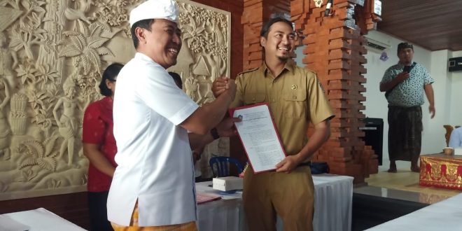 BADUNG – Babinsa Koramil 1611-03/Kuta Sertu Reinnold. B.A bersama Bhabinkamtibmas memantau serta mengamankan kegiatan penyerahan SK Kepala Lingkungan sd usia 60th.