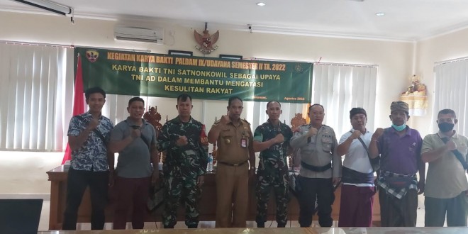 Kegiatan karya bakti dan wasbang TNI Satnonkowil sebagai upaya TNI AD dalam membantu mengatasi kesulitan rakyat yang dilaksanakan oleh Paldam lX/Udayana dengan mensosialisasikan wasbang ke pada masyarakat agar memahami kebeneka ragaman budaya yang ada di Indonesia dan jaga persatuan dan kesatuan bangsa (NKRI) yang di sampaikan oleh Lettu Cpl Nyoman prayana.