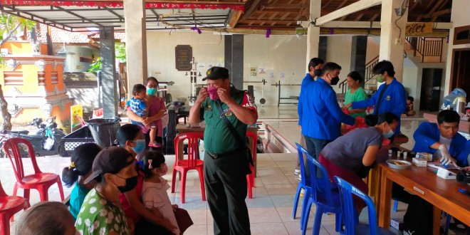 DENPASAR – Babinsa Koramil 1611-01/Dentim Sertu Nyman Padang melaksanakan pendampingan pelaksanaan posyandu Balita dan Lansia yang dilakukan oleh RSU Bakti Rahayu di Banjar Biaung Desa Kesiman Kertelangu Kec Dentim Kota Denpasar. Kamis (11/08/22).