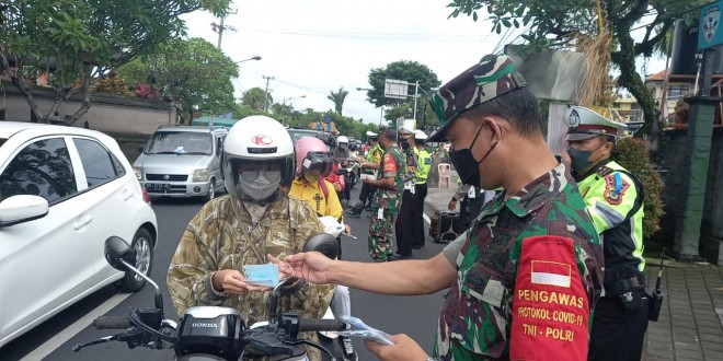 Kegiatan ini dilakukan agar warga yang melintasi Jalan Raya Denpasar – Gilimanuk tetap menerapkan disiplin protokol kesehatan dengan tetap menggunakan Masker dengan benar.