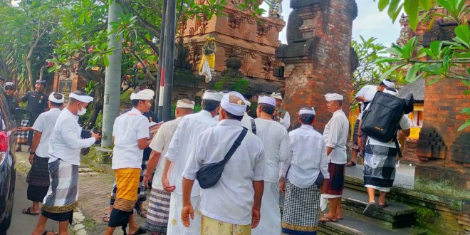 DENPASAR – Hari Raya Kuningan adalah hari raya yang dirayakan umat Hindu di Bali, dimana perayaan ini jatuh pada hari Saniscara (Sabtu), Kliwon, Wuku Kuningan. Sebagai wujud pelaksanaan tugas dan tanggung jawab dalam memelihara kondusifitas wilayah dalam kegiatan-kegiatan kemasyarakatan, Babinsa Koramil 1611-01/Dentim Kodim 1611/Badung turut serta membantu memantau dan mengecek langsung kegiatan persembahyangan Hari Raya Kuningan di Pura Dalem Batan Dulang Desa Adat Poh Gading Ubung Kaja Kec. Denpasar Utara yang sekaligus juga diselenggarakan Napak Pertiwi Ida Batara dan acara persembahyangan ini dipimpin langsung oleh Bendesa Adat I Gusti Ngurah Ketut Suparta. Sabtu (14/01/23) Sore.