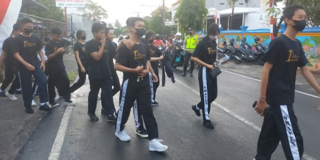 DENPASAR – Babinsa Koramil 1611-07/Denbar Peltu AA. Putra Wirata memantau kegiatan Gerak jalan santai dalam rangka memperingati HUT ke-1 SMAN 11 Denpasar dan diikuti sekitar 200 orang bertempat di Lapangan Astagina Wilayah Desa Padangsambian Kelod Kecamatan Denbar Kota Denpasar. Selasa (30/08/22).