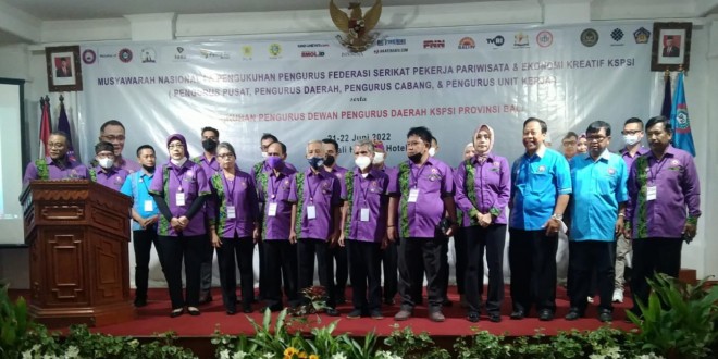 Denpasar – Babinsa Koramil 1611-01/Dentim Serda Yoakim Soga memantau berlangsung kegiatan Musyawarah Nasional I (satu) dan Pengukuhan Pengurus Federasi Serikat Pekerja Pariwisata dan Ekonomi Kreatif KSPSI Pengurus Pusat, Pengurus Daerah, Pengurus Cabang, & Pengurus Unit Kerja serta Pengukuhan Dewan Pengurus Daerah KSPSI Propinsi Bali dengan tema “Indonesia Sehat, Pariwisata Bangkit”. yang diikuti sekitar 300 orang peserta di Hotel Inna Bali Heritage Jln. Veteran No. 3 Br/Link Lelangon Desa Dauh Puri Kaja Denpasar Utara Kota Denpasar. Selasa (21/06/22).