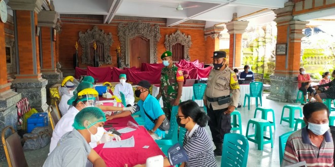 Denpasar – Dalam rangka mempercepat serbuan Vaksinasi ke 3 di wilayah Kota Denpasar dan sebagai upaya memutus rantai penyebaran Covid-19,Kodim 1611/Badung Melalui Koramil 1611-01/Dentim  Babinsa bersama Bhabinkamtibmas dan   Puskesmas 1 Denpasar Utara melaksanakan kegiatan Vaksinasi ke 3 Booster bertempat di Br Tampak Gangsul Desa Dangin Puri Kauh Kec.Denpasar Utara. Kota Denpasar.Selasa 15/2/22