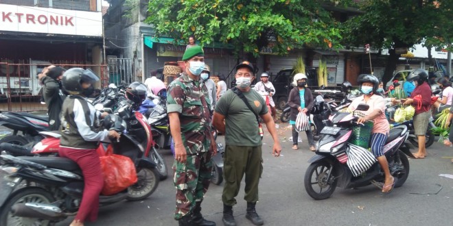 Denpasar Guna memutus mata rantai penularan Covid-19 merupakan tugas dan tanggung jawab semua pihak, Babinsa Koramil 1611-01/Dentim bersama Satgas Desa melakukan penegakkan disiplin prokes Level 2 terhadap warga yang bertempat di Pasar Tradisional jalan Rijasa Desa sumerta kauh Kecamatan Denpasar timur Kota Denpasar. Selasa (12/04/2022)