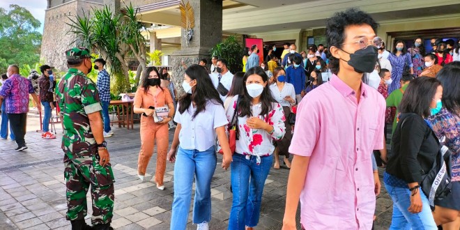 Dalam kegiatan tersebut Babinsa Koramil 1611-01/Dentim Peltu Made Arka melaksanakan pemantauan serta memberikan himbauan kepada jemaat yang sedang melaksanakan ibadah agar memakai masker dengan benar, Mencuci tangan dengan sabun di air yang mengalir, Menjaga jarak menghindari kerumunan dan Mentaati Peraturan yang telah ditetapkan oleh Pemerintah.ucap Babinsa