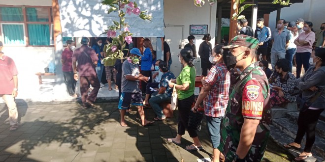 Denpasar – Dalam rangka mendukung Kegiatan Vaksinasi Covid 19 dan memutus penularan Covid-19, Babinsa Koramil 1611-01/Dentim Serka I Nyoman Suwenda melaksanakan pemantauan kepada warganya dalam vaksinasi tahap III Boster golongan usia 18 tahun ke atas yang di diselenggarakan oleh Puskesmas 1 Denut ,Penanggung jawab Dr.A.A.Ampera Prihantini dan 12 orang tenaga medis bertempat di SDN 18 Jl.Sandat Br.Kerta Bhuwana Kaja,Desa Dangin Puri Kangin Kec.Denut,Kota Denpasar. Sabtu (12/03/22)