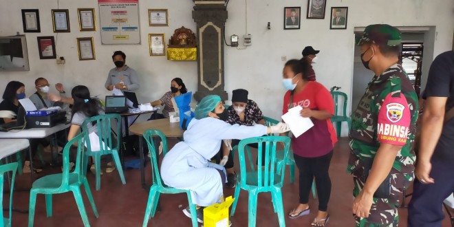 Denpasar – Dalam rangka mendukung Kegiatan Vaksinasi Covid 19 dan memutus penularan Covid-19, Babinsa Koramil 1611-01/Dentim Sertu Zaenal Arifin melaksanakan pemantauan kepada warganya dalam vaksinasi tahap 3 Boster yang di diselenggarakan oleh Br.Tegal Kangin Desa Ubung Kaja Bekerjasama dengan Pukesmas II Denut bertempat di Br.Tegal Kangin Jalan Indrajaya No 23 Desa Ubung Kaja kecamatan Denpasar Utara Kota Denpasar. Selasa (29/03/22)