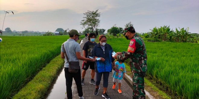 Denpasar – Dalam rangka menerapkan disiplin Protokol Kesehatan (Prokes) di masyarakat, Sesuai Instruksi Menteri Dalam Negeri No. 09 Tahun 2022 Tentang Pemberlakuan Pembatasan Kegiatan Masyarakat (PPKM) Level 3. Kodim 1611/Badung melalui Jajarannya Koramil 1611-01/Dentim Babinsa Peltu Made Arka bersama Bhabinkamtibmas,dan Satgas Kelurahan melaksanakan Kegiatan Penerapan Pendisiplinan PPKM Level III  bertempat di  Eko Wisata Subak Sembung Kel.Peguyangan Kec.Denut,Kota Denpasar. Minggu  13/2/2022