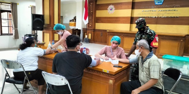 Hadir dalam kegiatan vaksin diantaranya petugas dari PUSKESMAS III Denpasar Utara, Babinsa dan Bhabinkamtibmas serta peserta vaksinasi yang teregistrasi sebanyak 123 orang.