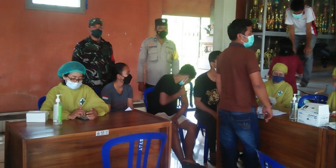 Badung – Dalam rangka mempercepat serbuan Vaksinasi ke 3 di wilayah Kabupaten Badung dan sebagai upaya memutus rantai penyebaran Covid-19,Kodim 1611/Badung Melalui Koramil 1611-04/Mengwi Babinsa bersama Bhabinkamtibmas pantau kegiatan vaksinasi Tahap III Boster golongan usia 18 tahun ke atas yang diselenggarakan oleh Puskesmas Mengwi 1 selaku kordinator Bpk Rai yuda sudarma. Dan Dr I Luh Putu Yuli Yuliandarai di Balai Banjar Dangin Pangkung desa kekeren Kec. Mengwi Kab. Badung.Rabu (09/03/22)