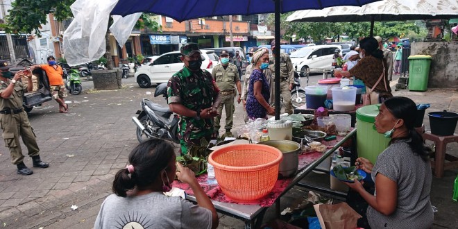 Babinsa Koramil 1611-04/Mengwi Bersama Satpol PP Terapkan Disiplin Prokes