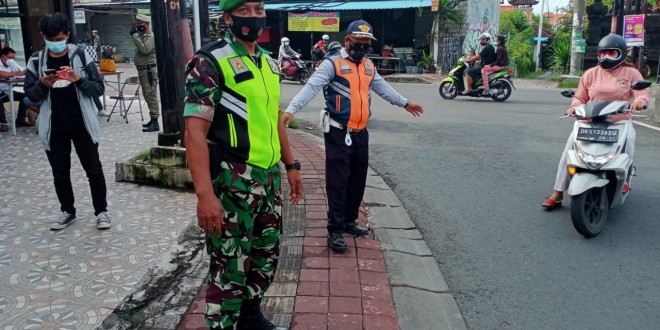 Denpasar – Dalam rangka menerapkan disiplin Protokol Kesehatan (Prokes) di masyarakat, Sesuai Instruksi Menteri Dalam Negeri No. 15 Tahun 2021 Tentang Pemberlakuan Pembatasan Kegiatan Masyarakat (PPKM) Kodim 1611/Badung melalui Jajarannya Koramil 1611-07/Denbar, Babinsa Sertu I Wyn Alit Kartika bersama Bhabinkamtibmas, Perangkat Desa, Pecalang,Linmas, Dishub dan Satpol PP melaksanakan kegiatan Patroli Gabungan PPKM Level 3 bertempat di Pertigaan Jln. Gn Tangkuban perahu, Jl. Gn Soputan dan Jl. Gn Salak Ds. Padangsambian Klod Kec. Denbar Kota Denpasar. Selasa22/02/2022