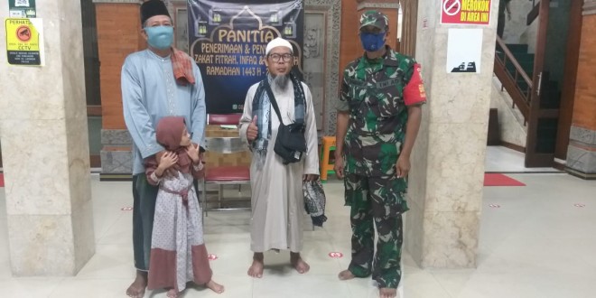 Denpasar – Babinsa Koramil 1611-07/Denbar Serda Bambang Purwito bersinergi dengan Bhabinkamtibmas melaksanakan pendisiplinan protokol kesehatan kepada warga binaan yang melaksanakan sholat Taraweh berjamaah di Masjid An Nur jln Diponegoro Br Sanglah timur Ds Dauh puri klod kec Denbar Kota Denpasar. Minggu (24/04/22)