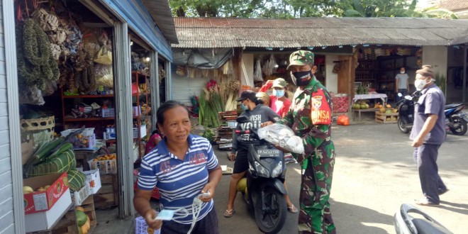 Badung – Guna menekan penyebaran Covid-19, Babinsa Jajaran Kodim 1611/Badung Babinsa Koramil 1611-08/Kuta selatan (Serka I Wyn Menih), bersama personil gabungan PPKM Darurat Covid-19 Kecamatan Kuta selatan, Kabupaten Badung, mengimbau warga untuk mematuhi protokol kesehatan (Prokes) Covid-19 dan mensosialisasikan PPKM Darurat di wilayah binaannya, Jumat (16/7/2021).