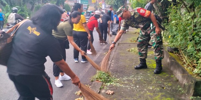 Lanjut Babinsa, menyampaikan dalam pelaksanaannya bersama-sama membersihkan sampah diareal dan membersihkan got disepanjang Jln. A. Yani lingkungan Br.Kertasari kelurahan Peguyangan