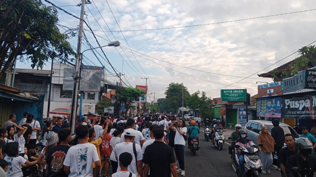 Babinsa Pemecutan Atensi Gerak Jalan Santai Dalam Rangka HUT Stt Eka Dharma Suwitra Ke 71
