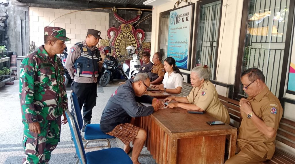 DENPASAR – Babinsa Koramil 1611-07/Denbar Serka Ponirin bersama Bhabinkamtibmas memantau serta mengamankan kegiatan penyaluran BLT DD ke X.
