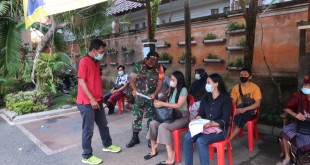 DENPASAR – Babinsa Koramil 1611-01/Dentim Peltu Nengah Marsa bersinergi dengan Bhabinkamtibmas mendampingi petugas kesehatan saat …