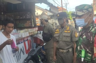 Bersama aparat Pemda Babinsa Koramil 1611-04/Mengwi Tegakkan Prokes