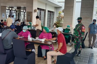 Babinsa 1611-08/Kuta Selatan Pantau Pelaksanaan Vaksinasi Ke 3 Booster Di Wilayah Binaan