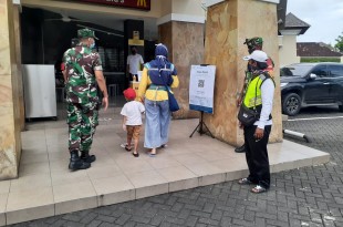JAJARAN KODIM 1611/BADUNG DATANGI MALL/SUPERMARKET PANTAU PENGUNJUNG GUNAKAN PEDULI LINDUNGI