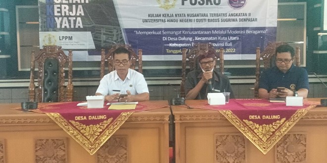 Badung – Guna memberikan rasa aman dan nyaman Babinsa Koramil 1611-03/Kuta Sertu Ketut Sadia bersinergi dengan Bhabinkamtibmas memantau kegiatan rapat Penerimaan Mahasiswa KKN Nusantara Terbatas Dari Universitas Hindu Negeri Denpasar di Aula Kantor desa Dalung Kec Kuta Utara Kab Badung. Rabu (29/06/22)