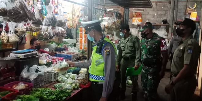 Saat pelaksanaan patroli pendisiplinan prokes Babinsa Koramil 1611-03/Kuta bersama Polri dan Pol PP mendatangi serta memberikan himbauan kepada pedagang dan pembeli selalu melaksanakan disiplin prokes khususnya melakukan pengecekan Prokes dan menghimbau, memakai masker, Cuci tangan, Menggunakan Hand Sanitizer serta Menjaga Jarak.