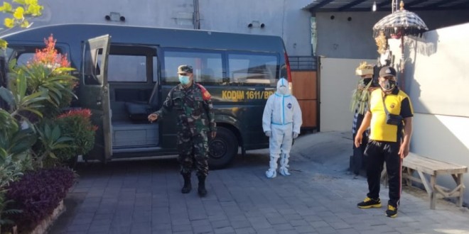Denpasar. Kodim 1611/ Badung melalui Jajarannya Koramil 1611/01 – Koramil 1611/08 dilibatkan untuk mengevakuasi warga Jln Kerta Winangun II Perumahan Graha Bali Paradiso No 32 yang positif Covid-19. Babinsa Koramil 1611/02 Kodim 1611/ Badung Serma Zais, bersama aparat desa , Bhabinkamtibmas, mendampingi Tim (Covid-19), mengevakuasi warga yang sebelumnya tidak mau dirawat di Karantina terpusat.Kamis (29/07/2021)