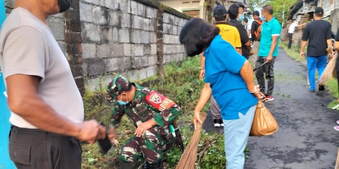 Karya bhakti membersihkan Selokan dan sampah yang kita lakukan di Lingkungan Br.Kepuh dan Br.Tengah bertujuan untuk menjaga serta memelihara agar lingkungan tetap bersih”. Selain menjadikan lingkungan tetap bersih, kegiatan karya bhakti yang dilakukan secara bersama-sama seperti ini juga akan meningkatkan kerjasama yang baik dan semangat gotong-royong”, Ucap Babinsa.