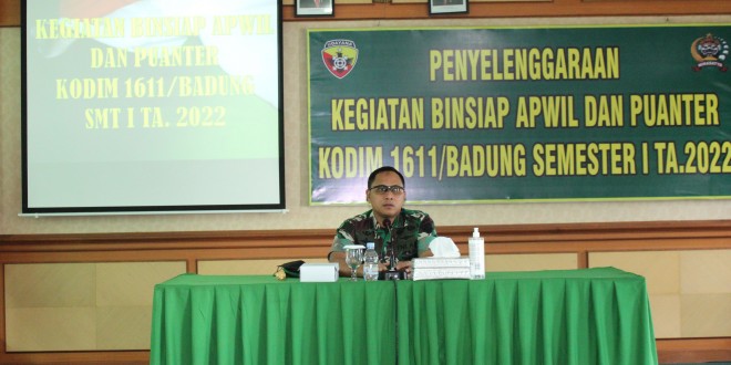 Komandan Kodim 1611/Badung Kolonel Inf. Dody Triyo Hadi S. Sos. M.Si mengatakan, sasaran penyelenggaraan Binsiap Apwil dan Puanter ini diharapkan agar lebih optimal, efektif dan efisien dalam penyelenggaraan dan acuan pelaksanaannya serta dapat meningkatkan kemampuan Prajurit dalam melaksanakan, menjabarkan, mensosialisasikan Binter ke wilayah, Sehingga terwujud Prajurit yang memiliki Mental, Disiplin, Semangat yang tangguh dan Profesional serta dapat berintegrasi dengan komponen masyarakat dalam melaksanakan tugas di satuan komando kewilayahan di jajaran Kodim 1611/Badung,” tegasnya.