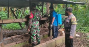 Badung – Sebagai upaya mengantisipasi penyakit mulut dan kuku (PMK) pada hewan ternak di wilayah binaan, Babinsa Koramil 1611-08/Kutsel Sertu Pinto bersinergi dengan Bhabinkamtibmas melaksanakan kegiatan pemantauan Spraying Sapi dan pemberian Vitamin untuk mencegah penularan PMK oleh Dinas Pertanian dan Pangan Kab.Badung. Bidang Peternakan dan Kesehatan Hewan dibantu TNI Polri …