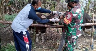 Badung – Guna mengantisipasi merebaknya penyakit mulut dan kuku Babinsa Koramil 1611-08/ Kutsel Sertu Kadek Kota di damping Batuut Pelda Mustangin mendampingi Dinas pertanian dan peternakan mengadakan pengawasan dan peternakan di wilayah Kec. Kuta Selatan Kabupaten Badung. Senin (04/07/22). Dokter Hewan Gede Sumaja dari Dinas pertanian dan peternakan melaksanakan pengawasan …