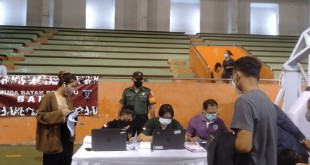 Badung – Babinsa Koramil 1611-03/Kuta Serma Sriyanto bersinergi dengan Bhabinkamtibmas memantau kegiatan Vaksinasi Covid 19 Dosis 1, 2 dan Booster untuk Masyarakat umum yang diselenggarakan oleh Binda Bali bekerjasama dengan Pemuda Batak Bersatu PAC Kuta utara, Satgas Pemuda Batak bersatu, dengan Dinkes Badung dan Puskesmas Kuta utara di Gedung GOR …