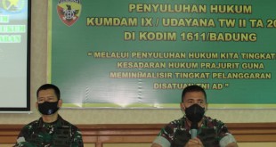 Denpasar – Guna untuk meningkatkan kesadaran hukum dan meminimalisir tingkat pelanggaran, Kodim 1611/Badung mendapatkan penyuluhan hukum Kumdam IX/Udayana TW. II TA. 2022, dengan tema “Melalui Penyuluhan Hukum Kita Tingkatkan Kesadaran Hukum Prajurit Guna Meminimalisir Tingkat Pelanggaran di Satuan TNI AD”, yang dibuka oleh Kasdim 1611/Badung Letkol Inf Pedro Soares Sarmento, …