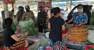 Badung – Dalam rangka menerapkan disiplin Protokol Kesehatan (Prokes) di masyarakat Babinsa Koramil 1611-04/Mengwi Sertu Ida Bgs Ambara bersama Satpol PP melaksanakan kegiatan pendisiplinan prokes ,pemberlakuan pembatasan kegiatan masyarakat (PPKM) level 2 dalam rangka menekan penyebaran Covid -19 di wilayah binaan bertempat di Pasar Adat Sembung dan Pasar Adat Gulingan …