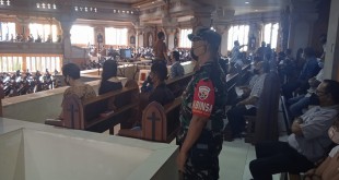Denpasar – Dalam rangka penegakan disiplin mematuhi Protokol Kesehatan (Prokes), Babinsa Koramil 1611-01/Dentim melaksanakan pemantauan di rumah ibadah untuk memberikan himbauan kepada jemaat yang sedang melaksanakan ibadah di Gereja YGYB Jalan Sari Dana 1A Dusun Uma Sari Desa Ubung Kaja, Denpasar utara Kota Denpasar mengenai penerapan protokol kesehatan. Minggu (03/04/22). …