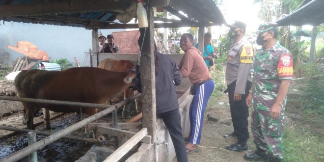 BADUNG – Guna mencegah terjadinya penyebaran penyakit pada hewan ternak sapi, Babinsa Koramil 1611-03/ Kuta Serma Sriyanto bersinergi dengan bhabinkamtibmas mendampingi petugas Dinas pertanian dan pangan UPTD Puskeswan gencar melakukan vaksinasi PMK (Penyakit Mulut dan Kuku) yang akhir-akhir ini kerap menyerang sapi ternak.