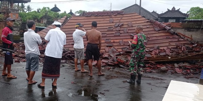 Saat ditemui awak media Sertu Made Windia mengatakan bahwa bangunan yang roboh adalah Balai Panggung Gong berukuran 8×5 di Pura Griya Sakti Pejenengan Manuaba Desa Jagapati, ucap Babinsa