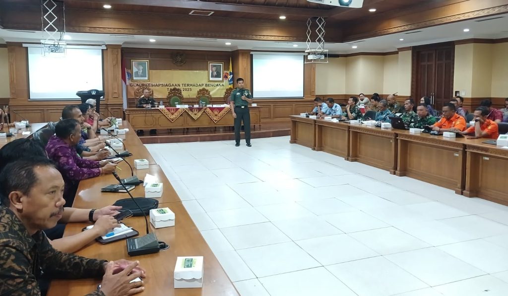BADUNG – Dandim 1611/Badung yang diwakili Wadanramil 1611-03/Kuta Kapten Czi Suharyono menghadiri kegiatan Gladi Kesiapsiagaan terhadap bencana tahun 2023 berupa Table Top Exercise (TTX).